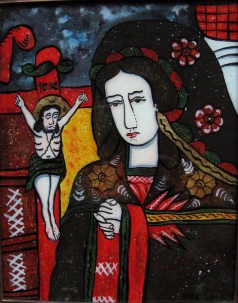 Mater Dolorosa - icone sur verre de Transylvanie