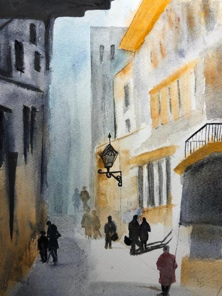 Vieux bâtiments, aquarelle
