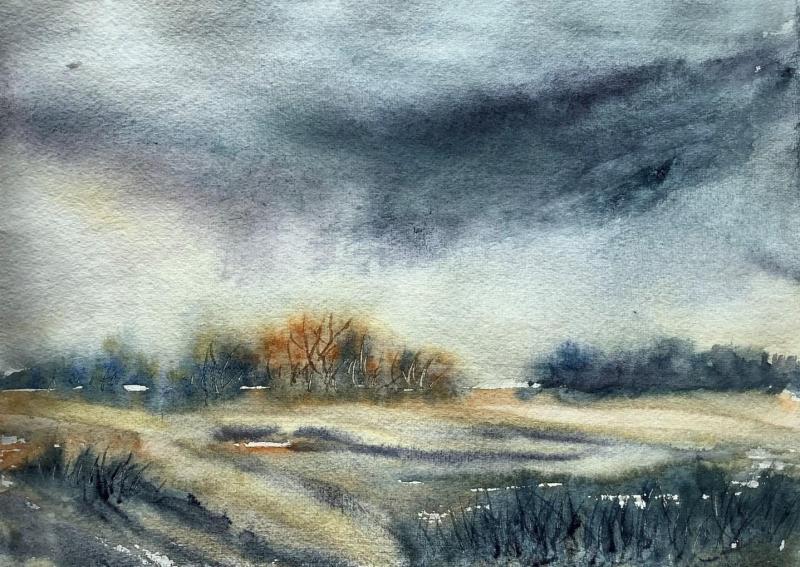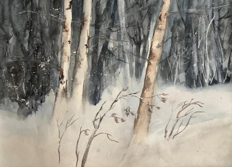 L'HIVER TARDE A VENIR aquarelle 12X15